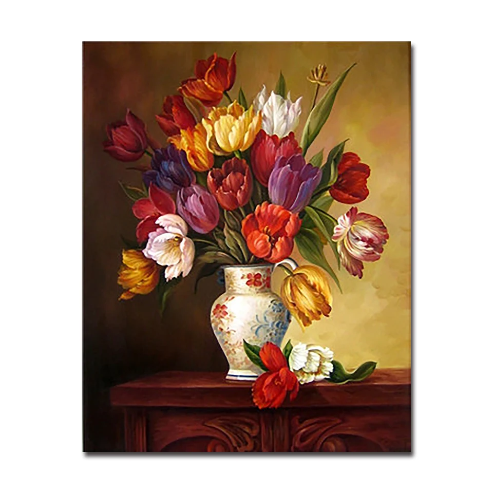 Flower DIY Oil Painting By Numbers Abstract Tulip Vase Drawing Unique Digit Handpainted Color Pictures On Canvas Wall Art Decor